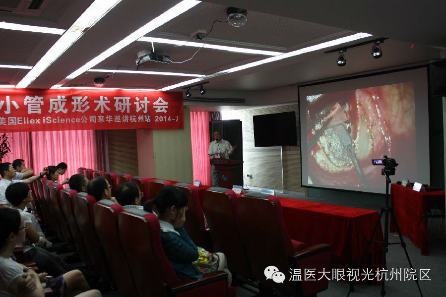 7月19日,“青光眼粘小管成形术研讨会·美国iScience公司专家团来华巡讲杭州站”在杭州院区隆重举行。会议由我院青光眼专科潘伟华主任主持,专家组成员由来自北京同仁医院眼科陈霖雅博士、美国VPof Global Medical Affairs of EllexiScience 的Dr. IngridKane、美国VP Global Sales of EllexiScience的Mr.James M. Chakales等组成。
