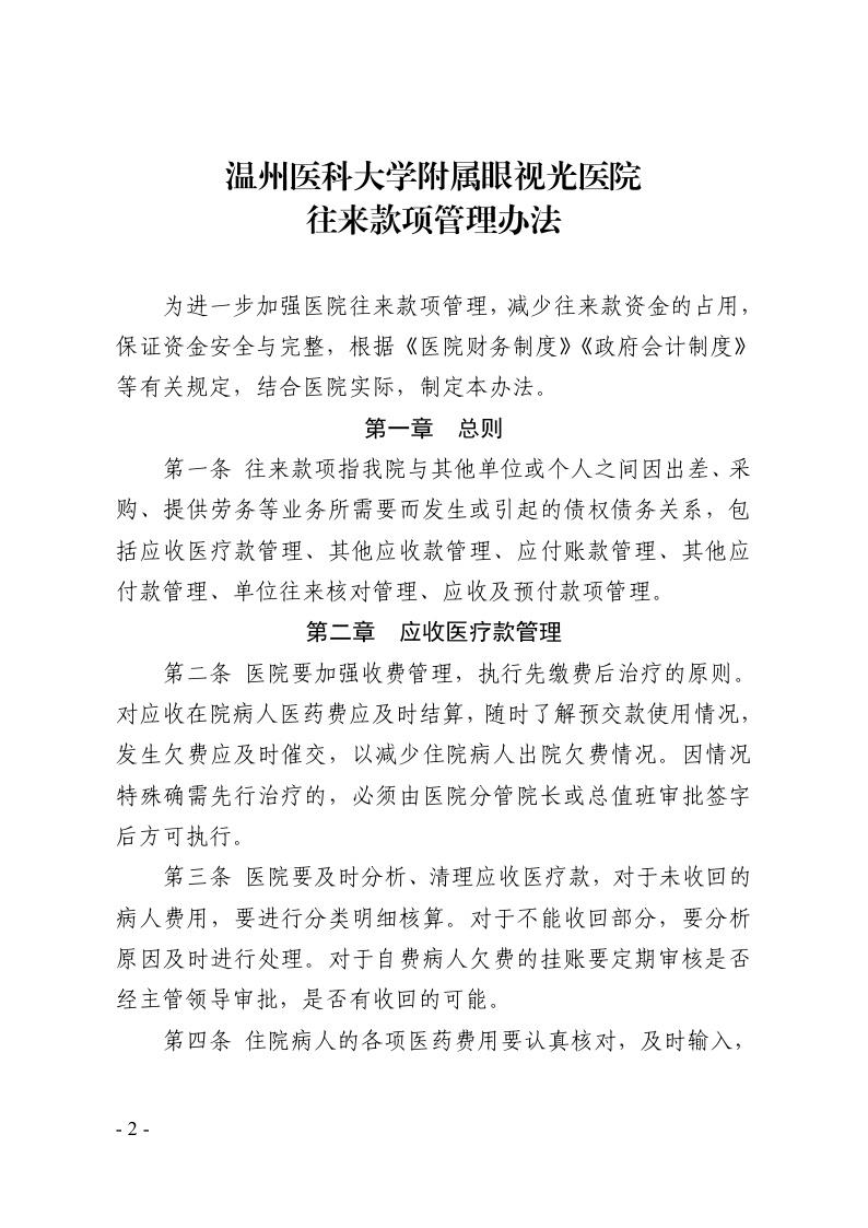 关于印发温州医科大学附属眼视光医院往来款项管理办法的通知